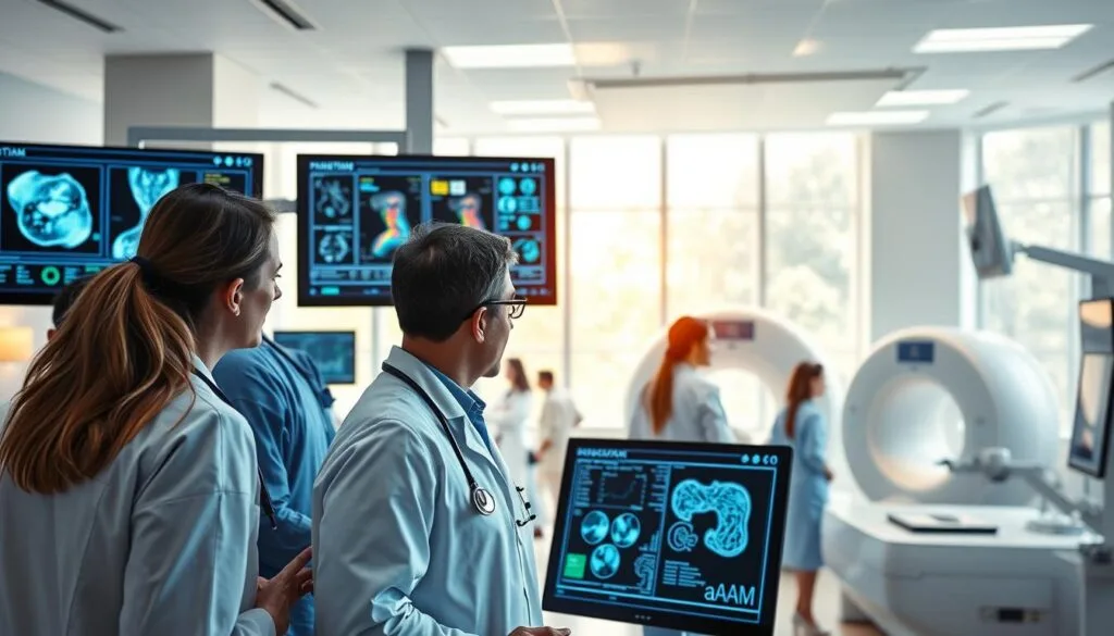 The start of AI in healthcare diagnostics was marked by early innovations. These innovations set the stage for today’s technologies. One key development was the creation of computer aided detection (CAD) systems in radiology.